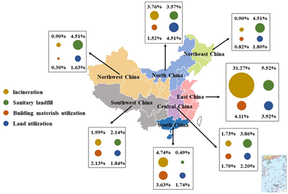 (2)对于经济增长迅速、人口众多、土地资源稀缺的地区,大力推荐我国华东地区污泥处理处置模式。相反,对于经济条件差、城市化率低的地区,应大力支持污泥的资源化利用。