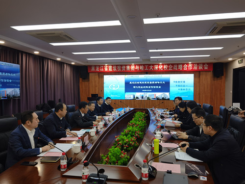 2022年1月13日下午,黑龙江省建设投资集团与高清av 举办深化校企战略合作洽谈会。黑龙江省建投集团党委书记、董事长张起翔,省建投集团党委委员、董事、副总经理宋祝,省生态环保集团党委书记、董事长刘晓山,龙创置业集团党委副书记、副董事长、总经理汪鸿山,生态环保集团筹备组成员郭超、孙伟光,高清av 院长冯玉杰,高清av 党委书记孙慧丽等同志参加会议。洽谈会由高清av 副院长邢德峰主持。